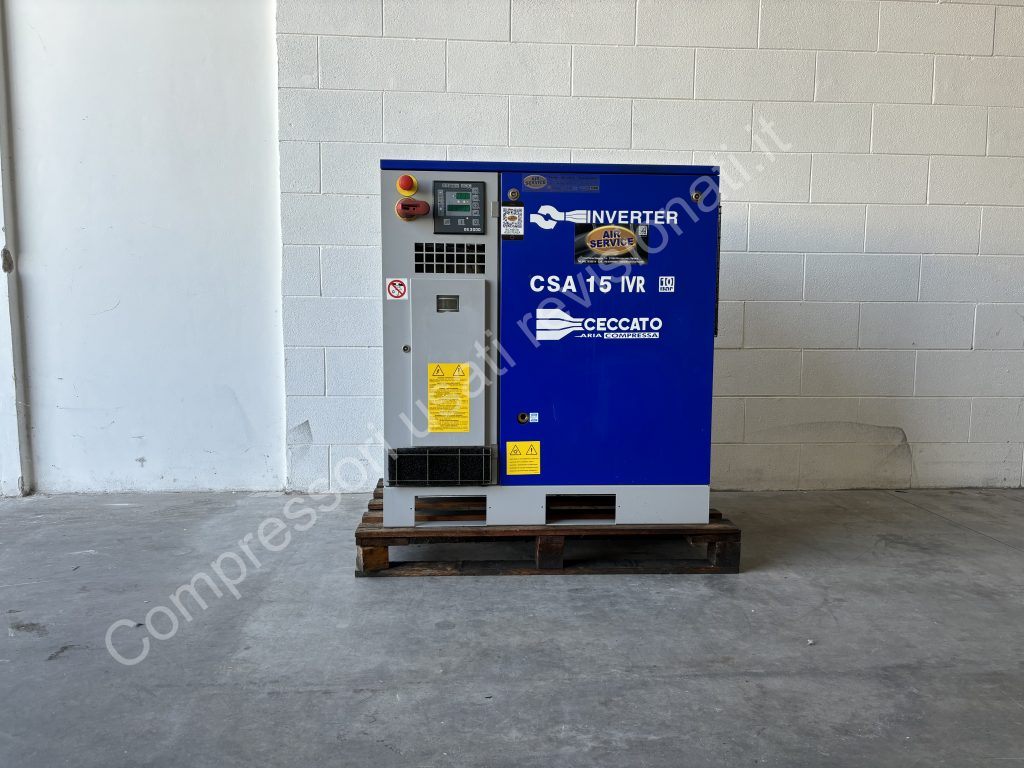 Il compressore Ceccato CSA 15 IVR è un compressore a vite con trasmissione a cinghia. Con una potenza di 11 kW ( 15 Hp) il compressore fornisce una portata massima di 1.665 litri al minuto e una portata minima di 574 litri al minuto e opera a una pressione massima di 10 bar. Dotato di inverter di prima generazione. Alimentazione a 400 Volt. Una valida soluzione per chi necessita una soluzione economica sia come acquisto sia come consumi energetici.