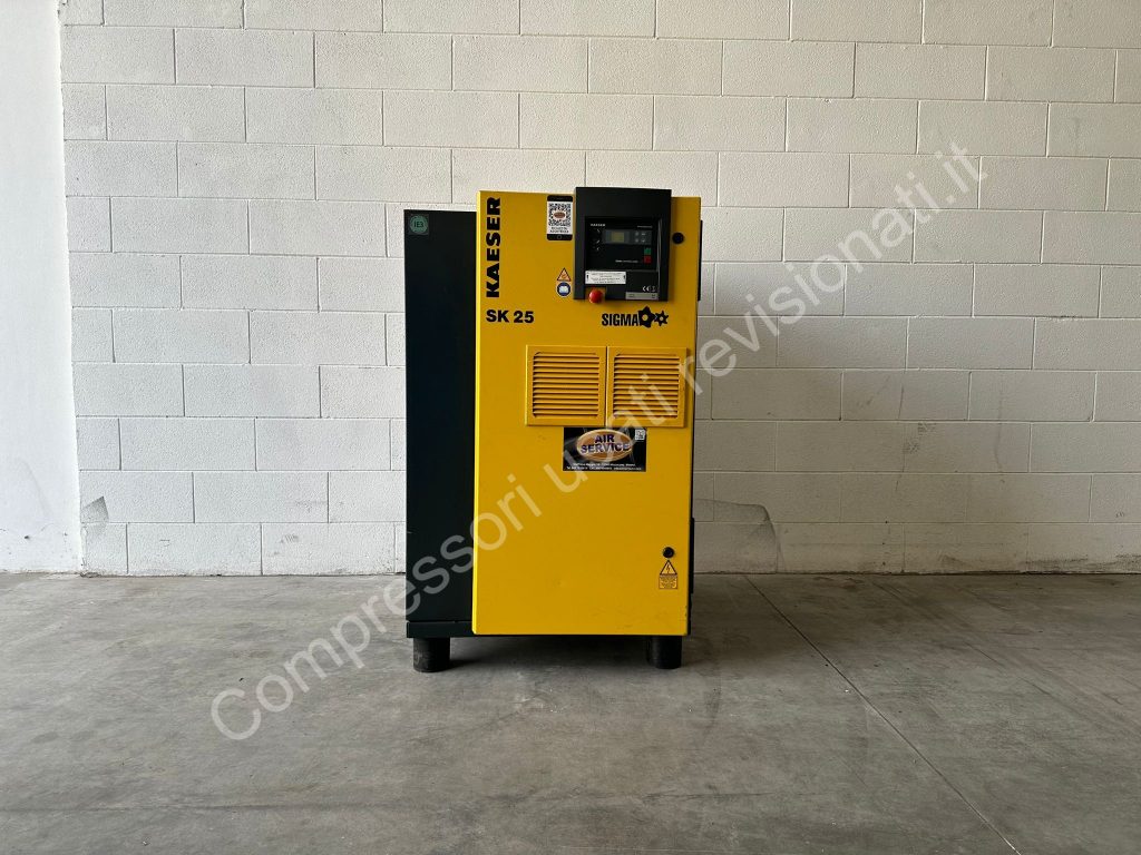Il compressore Kaeser SK 25 SFC è un’unità a vite del 2016, progettata per offrire alta efficienza e affidabilità. Con una potenza di 15 kW ( 20 Hp) il compressore fornisce una portata massima di 2.600 litri al minuto e una portata minima di 800 litri al minuto e opera a una pressione massima di 8 bar. Dotato di nuovo inverter sostituito nel 2022, questo modello ha accumulato 20.000 ore di funzionamento totali.Alimentazione a 400 Volt. Trasmissione a cinghia Vite – Motore. Viene fornito con una garanzia di 6 mesi.